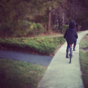 My 10 year old god-daughter received a new sparkly purple and silver bike for Christmas. Now, like any child would, upon receiving this bike, she wanted to go for a ride at every opportunity but due to lack of time she never got a chance. Last weekend she asked could she come over to ride her bike. I reluctantly agreed and prayed Maryland’s bi-polar weather would work in my favor for just ONE day.